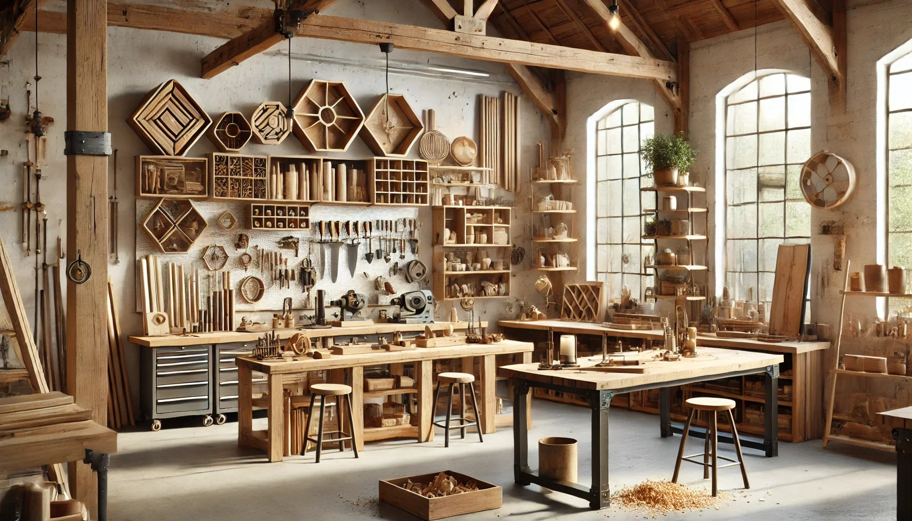 Custom pieces made from wood, metal, and organic materials.